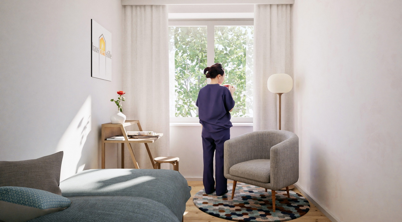 Ein besonderes Augenmerk gilt außerdem dem ersten Eindruck: Der Eingangs- und Ankommensbereich soll neu gestaltet werden, damit Orientierung und Gastfreundschaft bereits beim Betreten des Hauses spürbar werden. Ebenso wird der kleine Meditationsraum in Richtung der Klausenzimmer neu gedacht: Ein lichtdurchfluteter Raum mit Blick in den Garten könnte künftig einen stimmigen Ort für Gespräche und Begegnung bieten – und gleichzeitig mehr Licht in den Gangbereich zu den Klausenzimmern bringen.