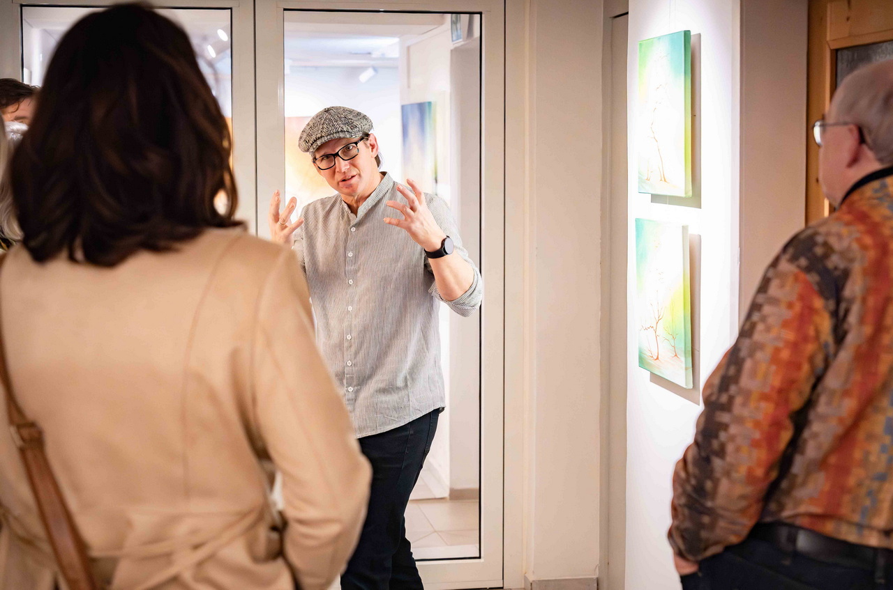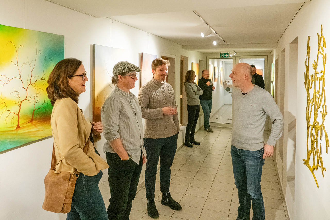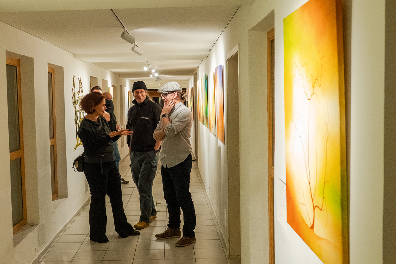 Und es sind Bilder der Stille, denn „alles Wachsen vollzieht sich in Stille“, wie Gerhard Kubassa, der sein Atelier in einer aufgelassenen Kirche im Mürztal hat, bei der Eröffnung der Ausstellung erläuterte. Auch wenn die Gäste bei der Vernissage vorwiegend aus dem Bekanntenkreis des Künstlers kamen, so kannten ihn doch noch nicht alle von seiner Seite als Künstler. Und die Bilder sind auch nur ein Aspekt seines vielseitigen künstlerischen Schaffens.