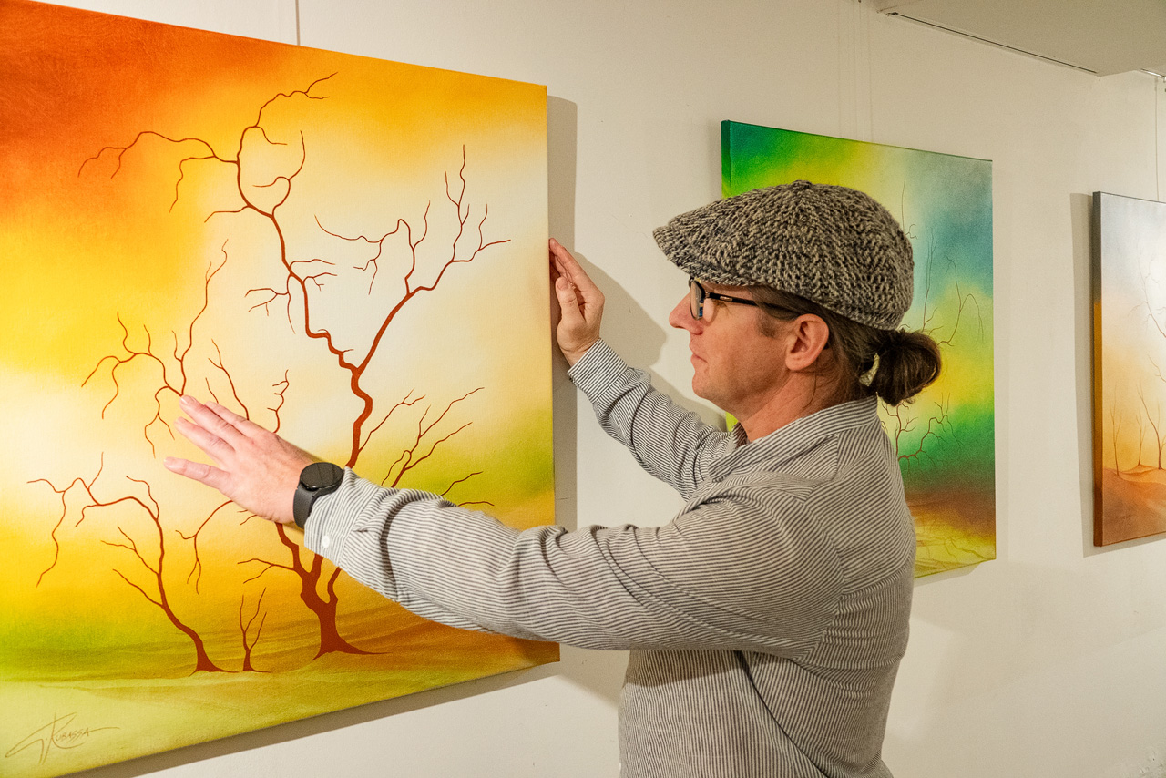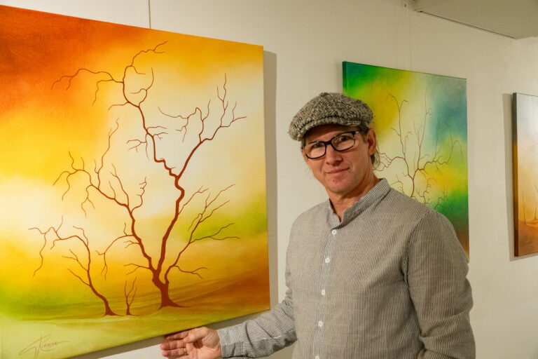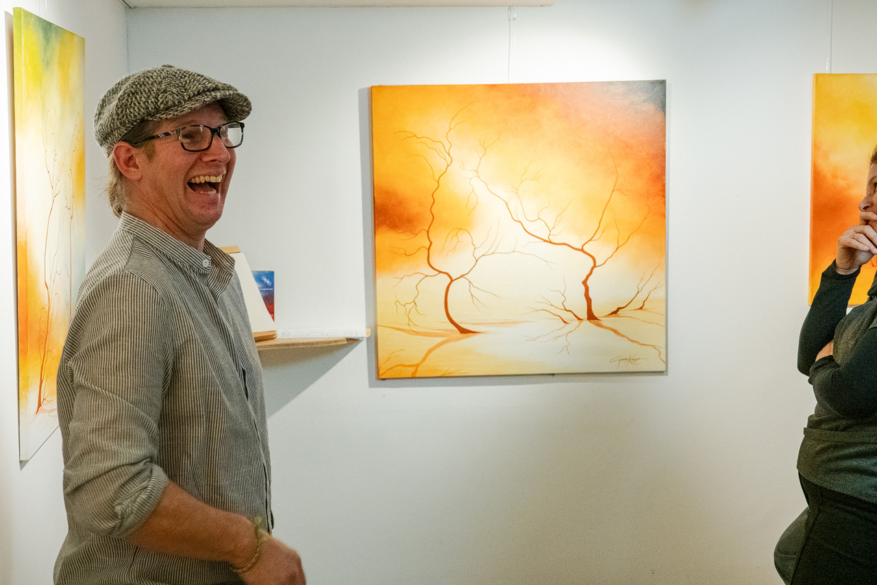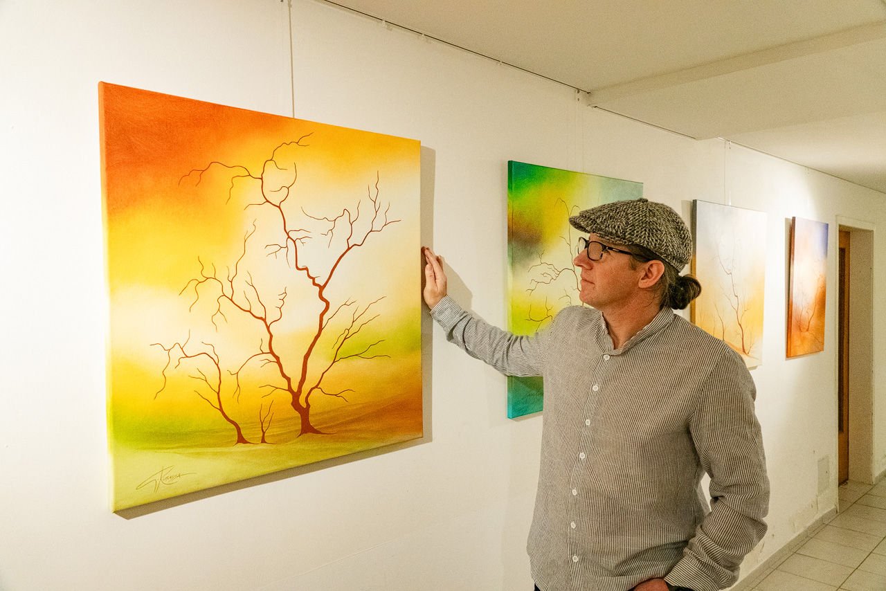 Und es sind Bilder der Stille, denn „alles Wachsen vollzieht sich in Stille“, wie Gerhard Kubassa, der sein Atelier in einer aufgelassenen Kirche im Mürztal hat, bei der Eröffnung der Ausstellung erläuterte. Auch wenn die Gäste bei der Vernissage vorwiegend aus dem Bekanntenkreis des Künstlers kamen, so kannten ihn doch noch nicht alle von seiner Seite als Künstler. Und die Bilder sind auch nur ein Aspekt seines vielseitigen künstlerischen Schaffens.
